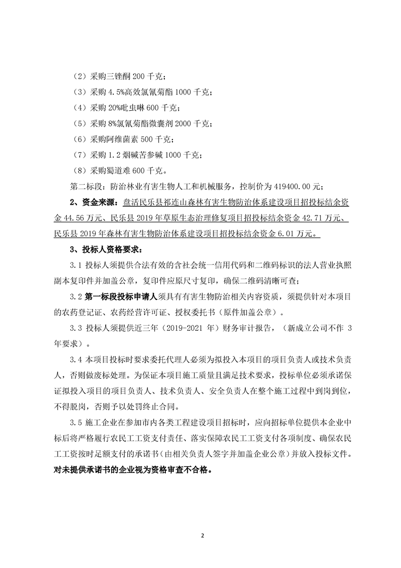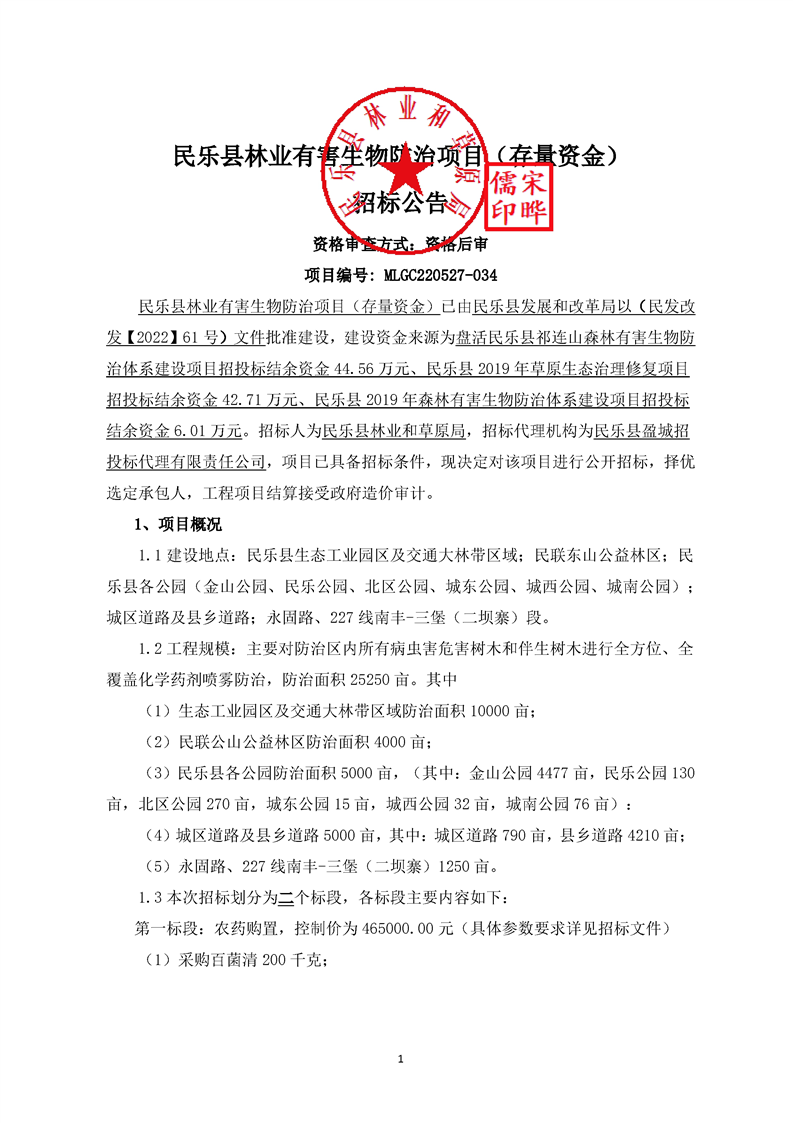 民乐县林业有害生物防治项目(存量资金)第一至第二标段