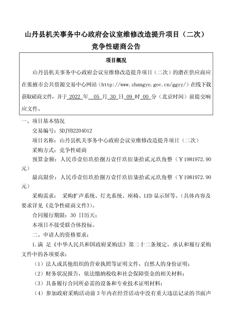 山丹县机关事务中心政府会议室维修改造提升项目(二次)