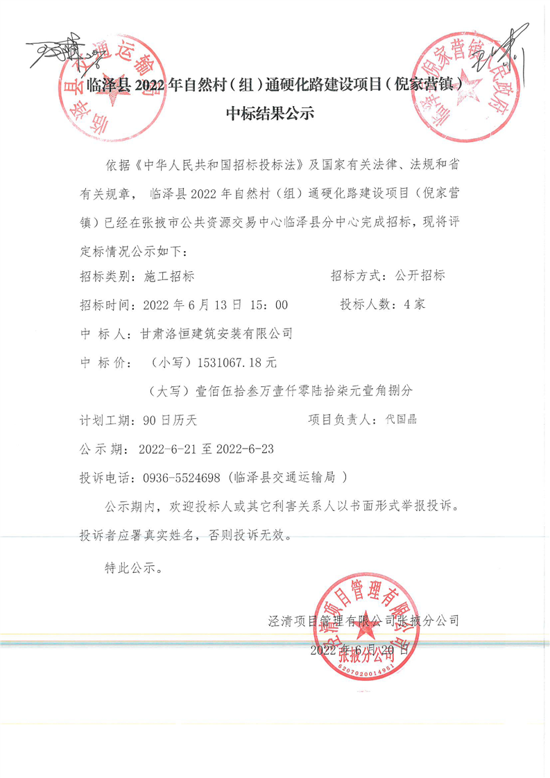 临泽县2022年自然村(组)通硬化路建设项目(倪家营镇)